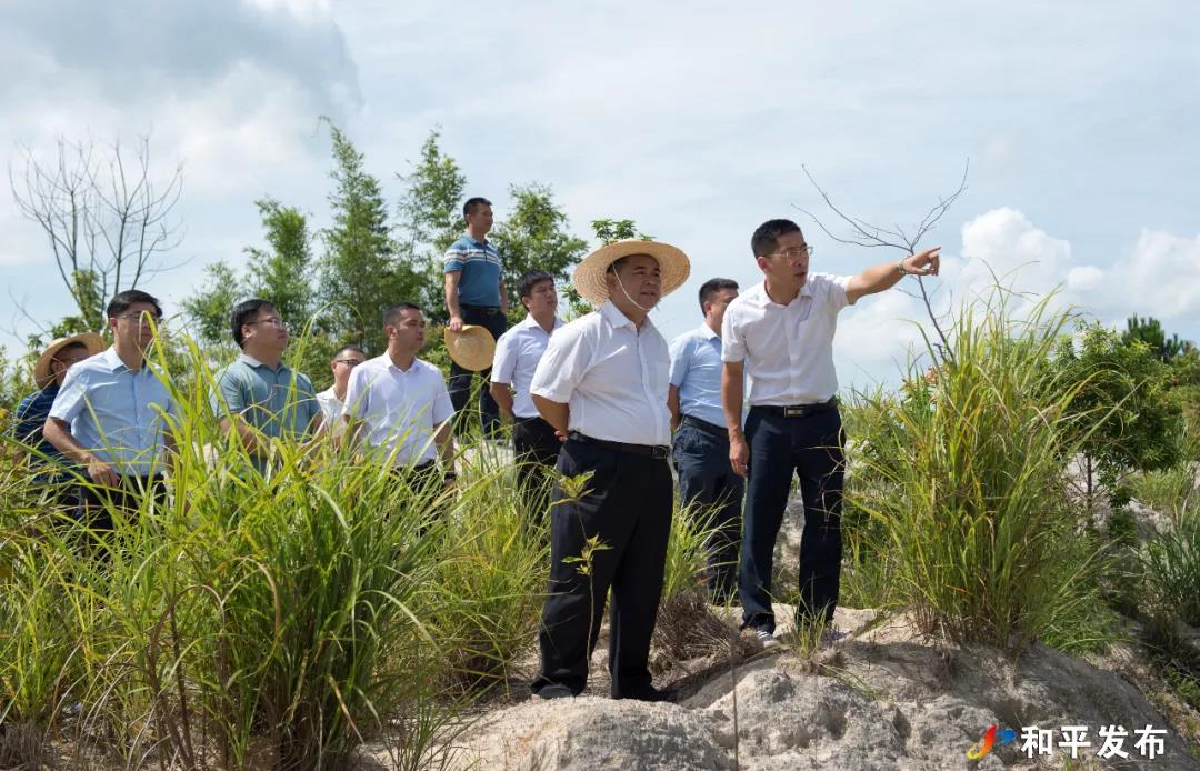 邓卓文首先来到长塘镇奇公应废弃稀土矿点,仔细察看矿山复绿工作现状,认真听取相关情况汇报,详细了解矿山复绿进展情况,研究解决复绿工作存在的问题。