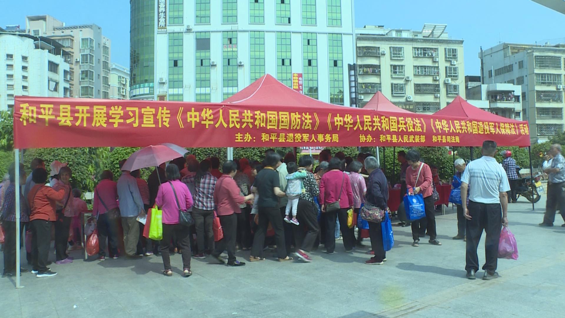 4月13日,县退役军人事务局联合县人武部、县司法局在县城六角亭开展学习宣传《国防法》《兵役法》《退役军人保障法》活动, 推动政策法规走到群众身边、走进群众心里。