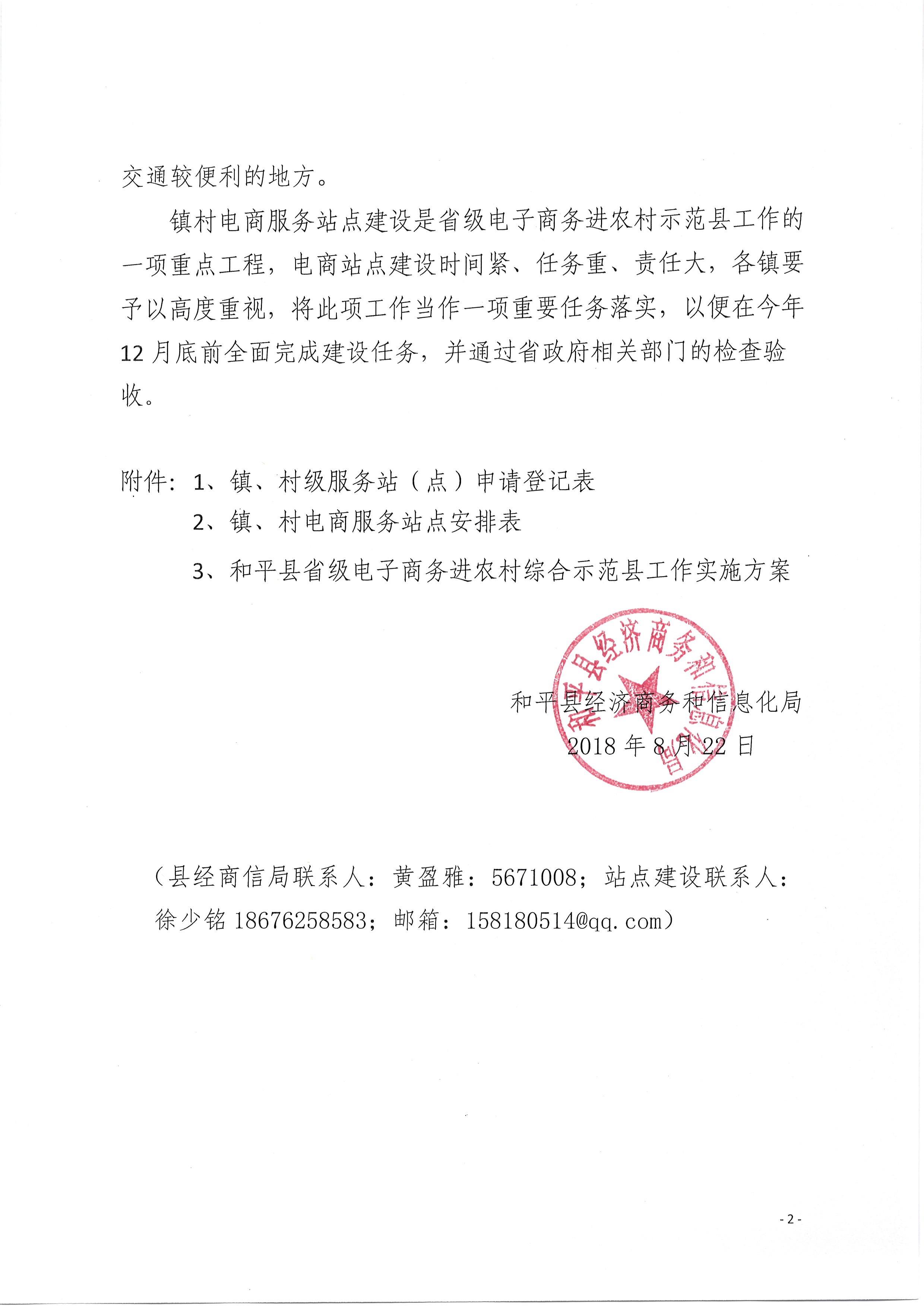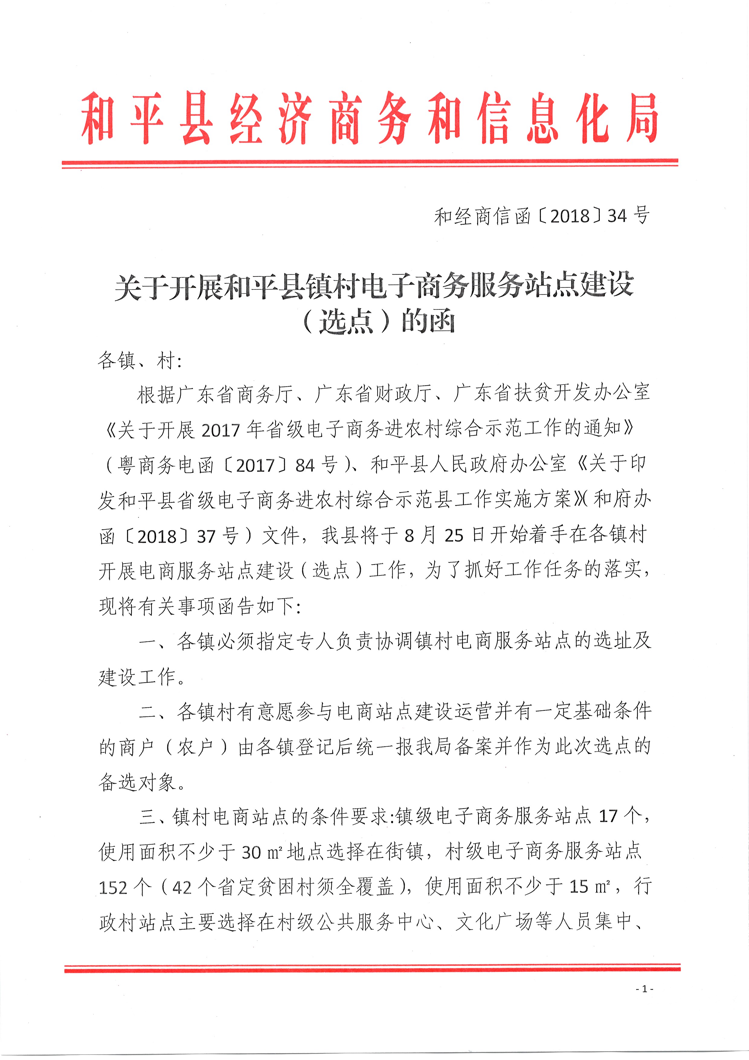 关于开展和平县镇、村电子商务服务站点建设(选点)的函